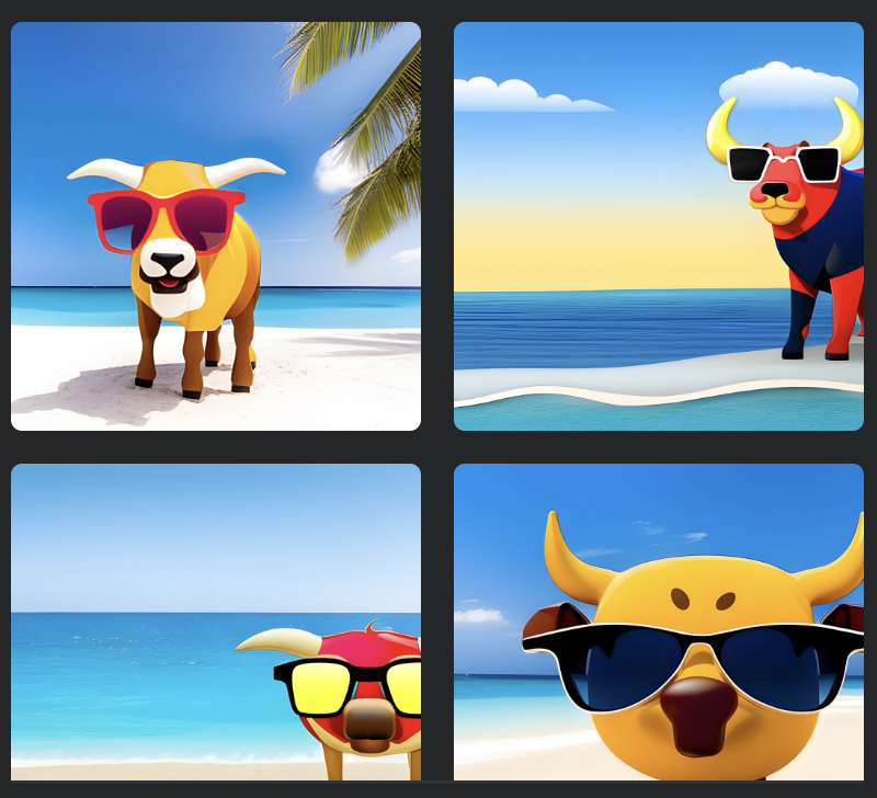 Canva has come a LONG way in just a few years! Once you select the type of design, it will bring you to the editing space and let you type in whatever you would like to see on your screen. I went with “A cartoon bull wearing sunglasses at the beach” and here is what Canva created for me:
