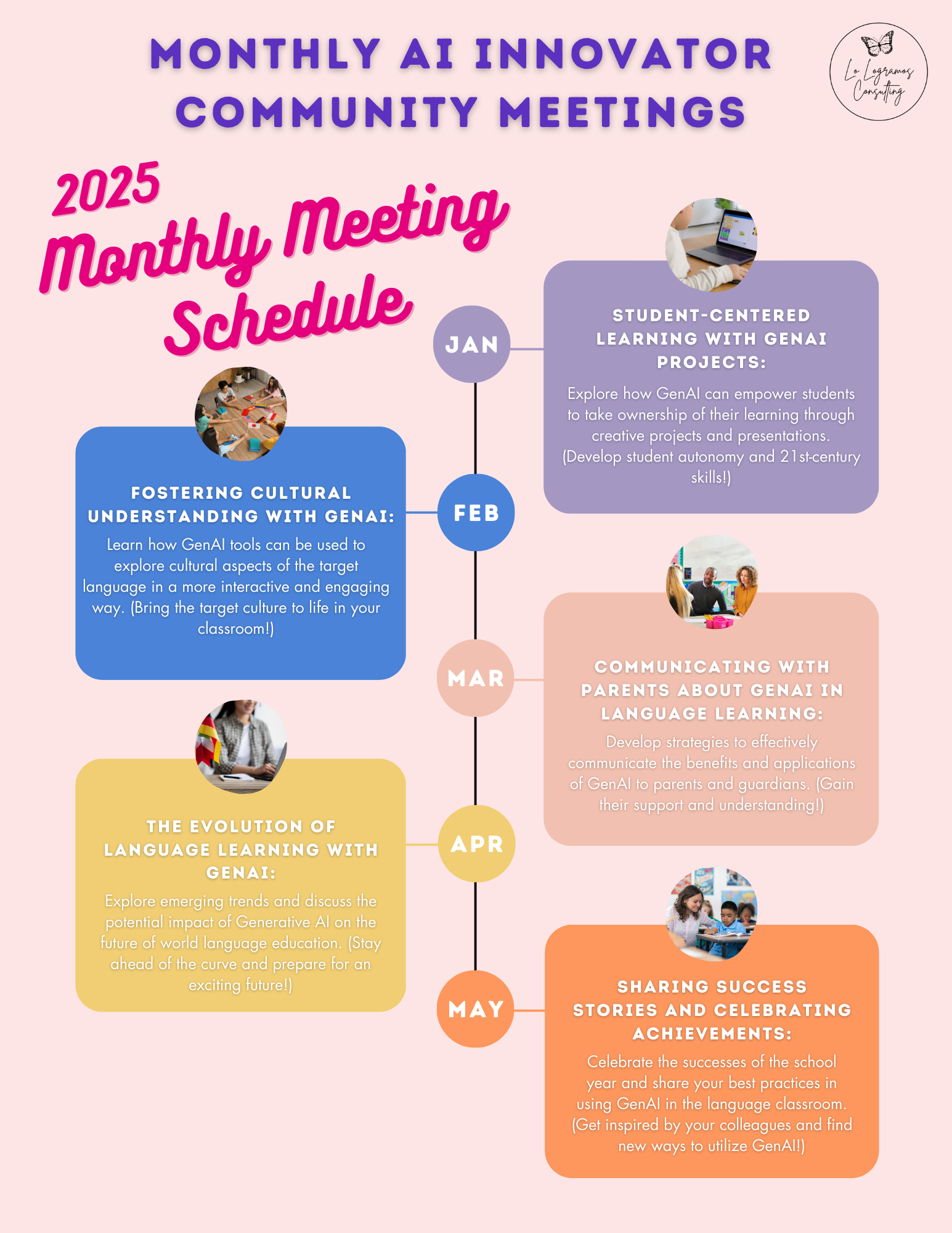 *And, if you are a language educator and are interested in joining a unique community dedicated to exploring these ideas and many other topics related to Generative AI in language instruction, consider a membership to our AI Innovator Community for Language Educators. A yearly subscription includes monthly themed GenAI workshops, access to several asynchronous courses dedicated to GenAI in the language classroom, a quarterly newsletter with the latest tips & insights and ongoing chats & collaboration amongst educators within the private AI Innovator discussion space. There are also several GenAI courses available to begin or continue your journey in learning about Generative AI as a language educator!