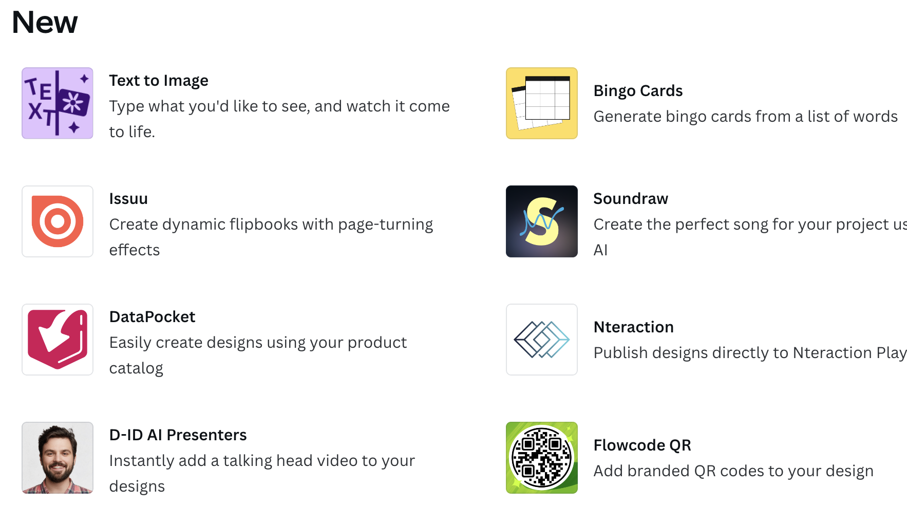 #realtalk moment, I could probably spend a full week exploring Canva and learning all of the cool tricks the site does! It such an AWESOME tool! I stumbled upon a new feature using AI called “Text to Image” available within the Apps section. See the image below, top left corner but don’t you just want to click on everything?!?