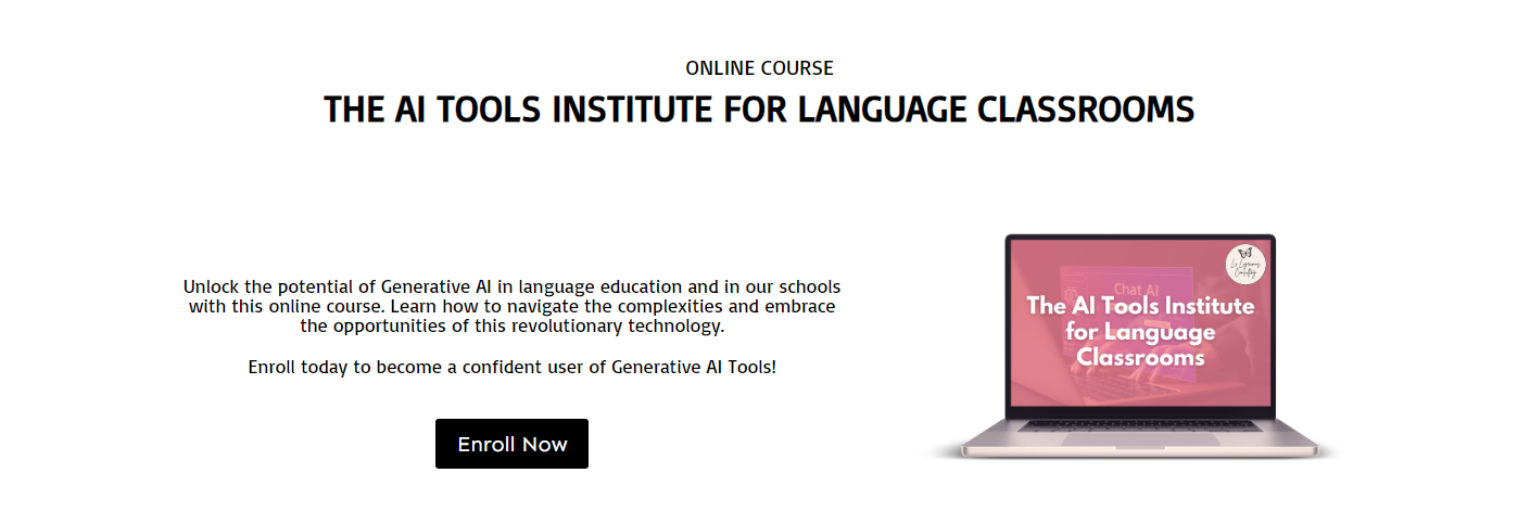 🦋 ALL WEEK LONG! 50% OFF! 🤯 AI Tools Institute for Language Classrooms- An Asynchronous Course with seven classes to help guide your progress as a Beginner to Intermediate User of AI!